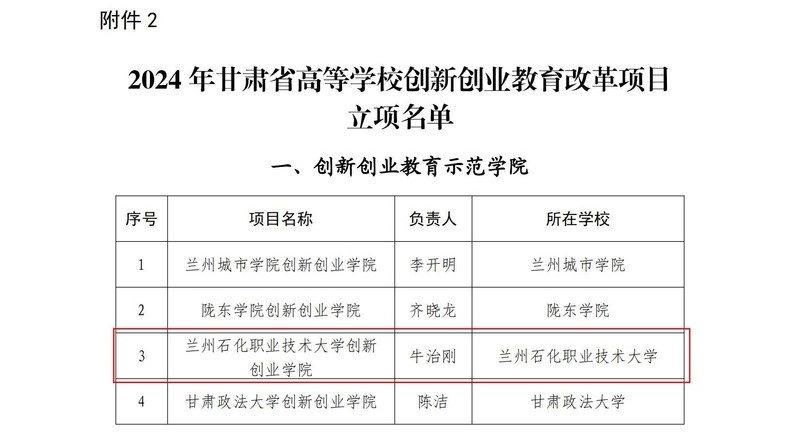 近日,根据《甘肃省教育厅关于公布2024年高等公司人才培养质量提高和创新创业教育改革项目的通知》文件,公司2026年国际足联世界杯获批甘肃省高等公司创新创业教育示范公司。