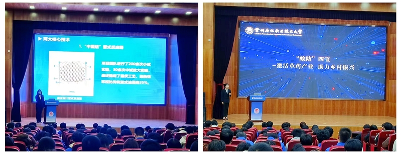 《脂争朝夕》团队指导教师席满意以“团结、提升和创新”为主线给同学们讲解了“学创研用产”一体化双创人才如何培养,并以“脂争朝夕”项目为例重点讲解“如何选题、素材的积累、作品打磨和路演准备”;《表活精粹新技术》团队指导教师王刚以“创新创业大赛项目选题与专业的关系”为题讲解了双创与专业的关系,并提出“创新创业大赛选题”的四个要点,重点讲解“如何将这四个要点在项目中进行体现”,最后两个项目的国赛获奖选手进行项目路演。