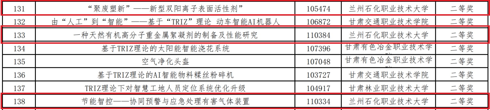 127日,2024年中国创新方法大赛甘肃省老员工创新方法区域赛在兰州工业公司兰州新区新校区举办。根据《2024年中国创新方法大赛甘肃省老员工创新方法区域赛的获奖通知》(甘创会字〔202412号)文件内容,公司参赛项目共获得一等奖4项,二等奖3项,三等奖5项的优异成绩,成绩位列全省职业院校第一。